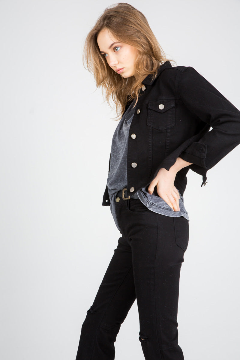 Melrose Cropped Denim Jacket Black